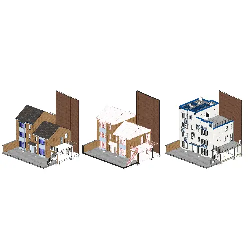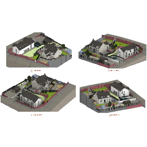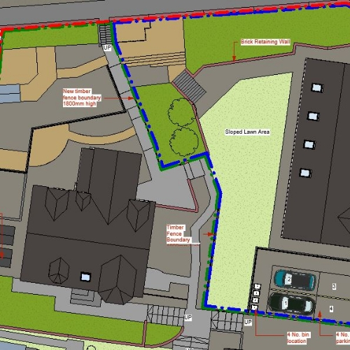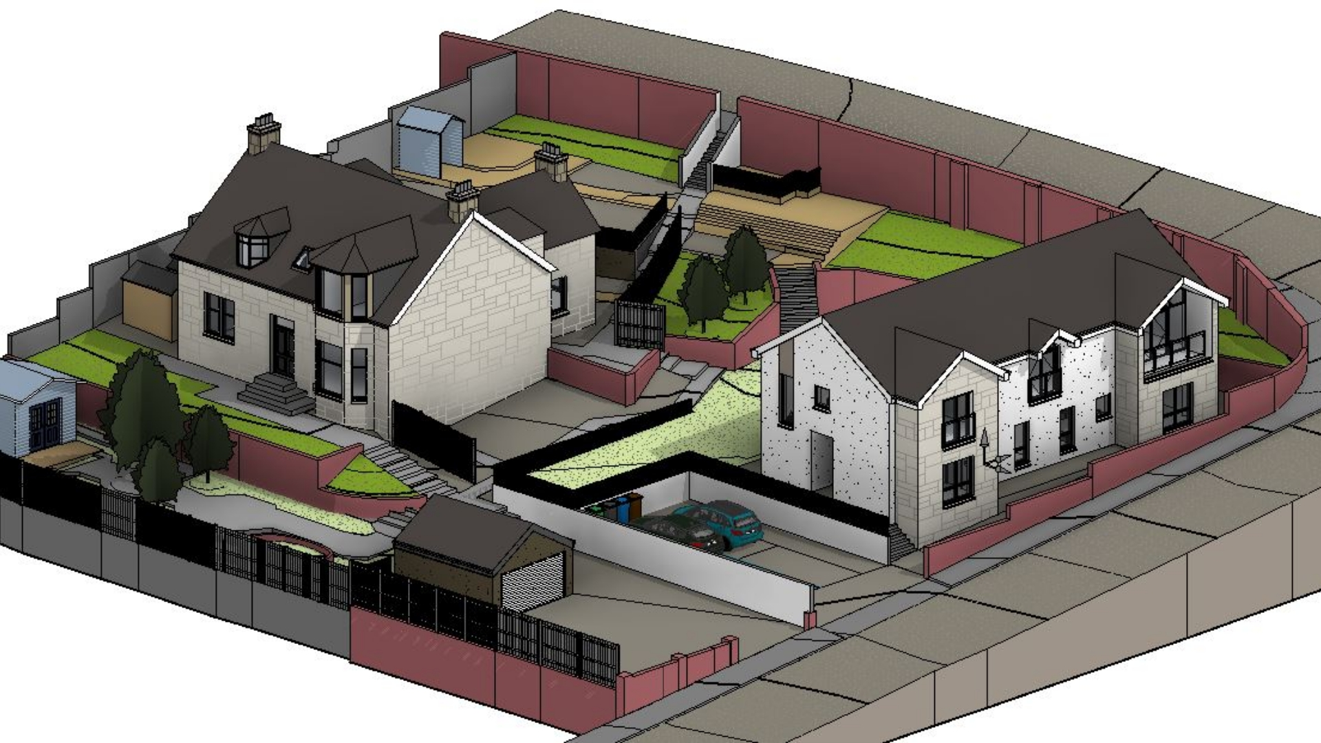 Assisting the architect in subdividing a property to create space for a second dwelling, we faced a particularly challenging planning stage. To support the process, we modelled the site with precise geometry and accurate levels, producing a true-to-condition 3D model and drawings of the proposed property within its surroundings.