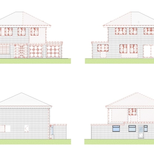An existing home with internal alterations, rear and double-storey side extensions, all windows and doors replaced, and fully clad in insulation and brick slips to match its original look. This makeover includes an open kitchen, additional bedrooms, and improved spaces to better serve its residents.