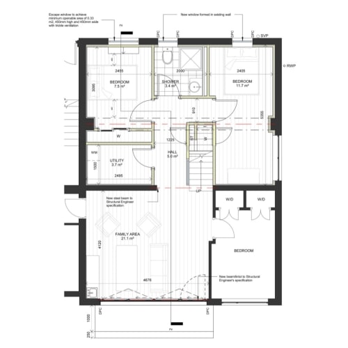 A challenging internal alterations project to the basement of a detached house which had the major issue of flooding occasionally. The Building Control application and approval focused on fixing this issue with various tanking solutions to create a water mitigation strategy currently in-progress on site.