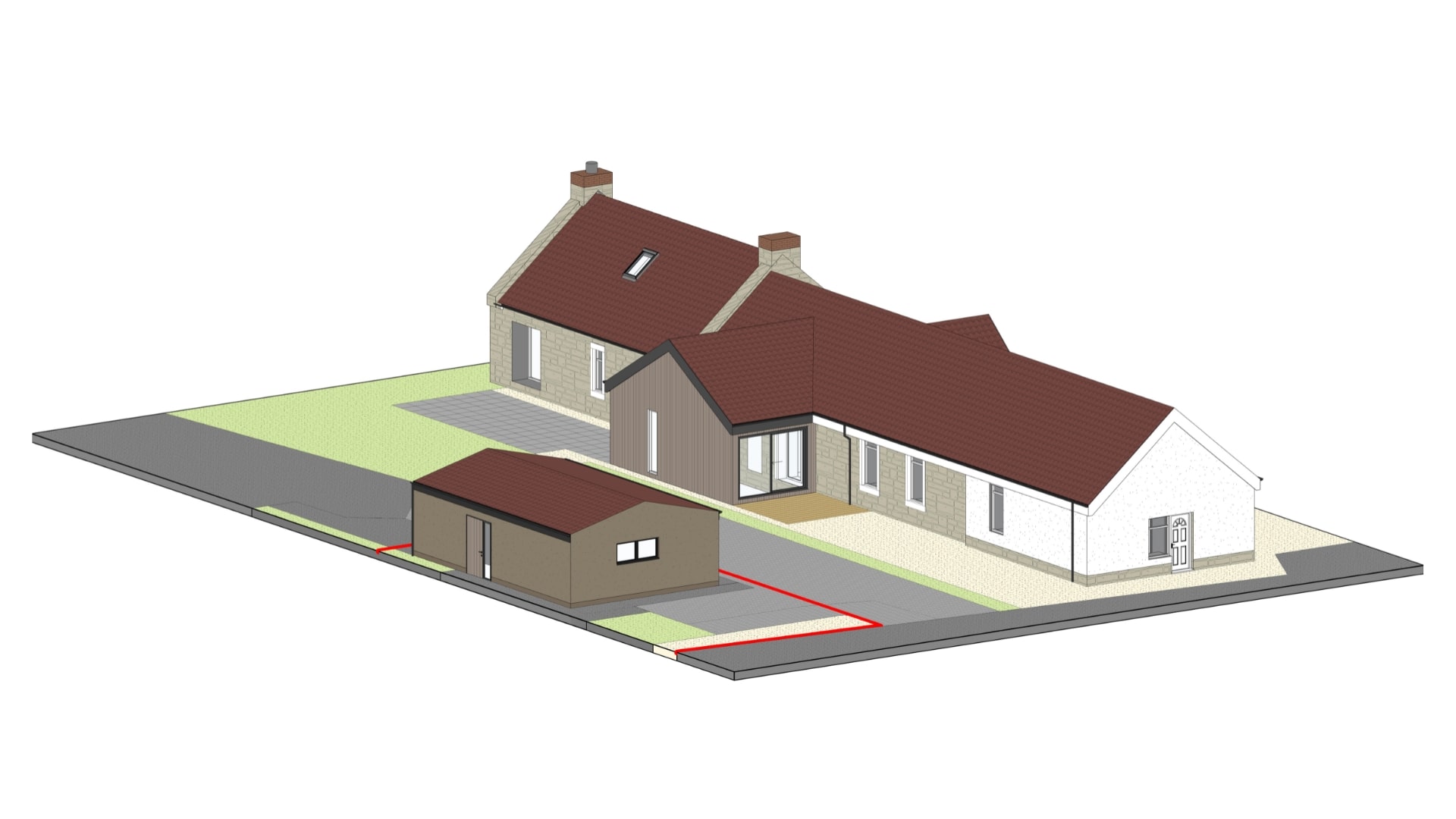 An intricate old existing farm house with proposed open plan Internal alteration and a timber cladding extension to compliment its parent structure. And a change of use garage conversion into 2 accommodations. The building received planning approval and is ready to commence onto the next stage of Building Control.