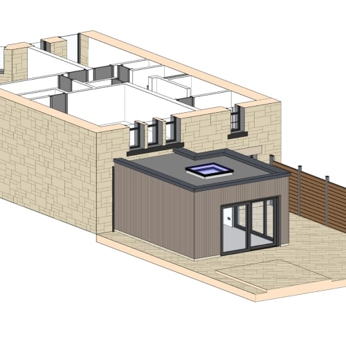 A garden room rear extension for the basement flat of a tenement building that achieved Planning approval in a challenging neighbourhood. Currently in-progress for warrant approval, this timber clad garden room utilises the many screens and glazing to bring in as much daylight for the occupants as possible.